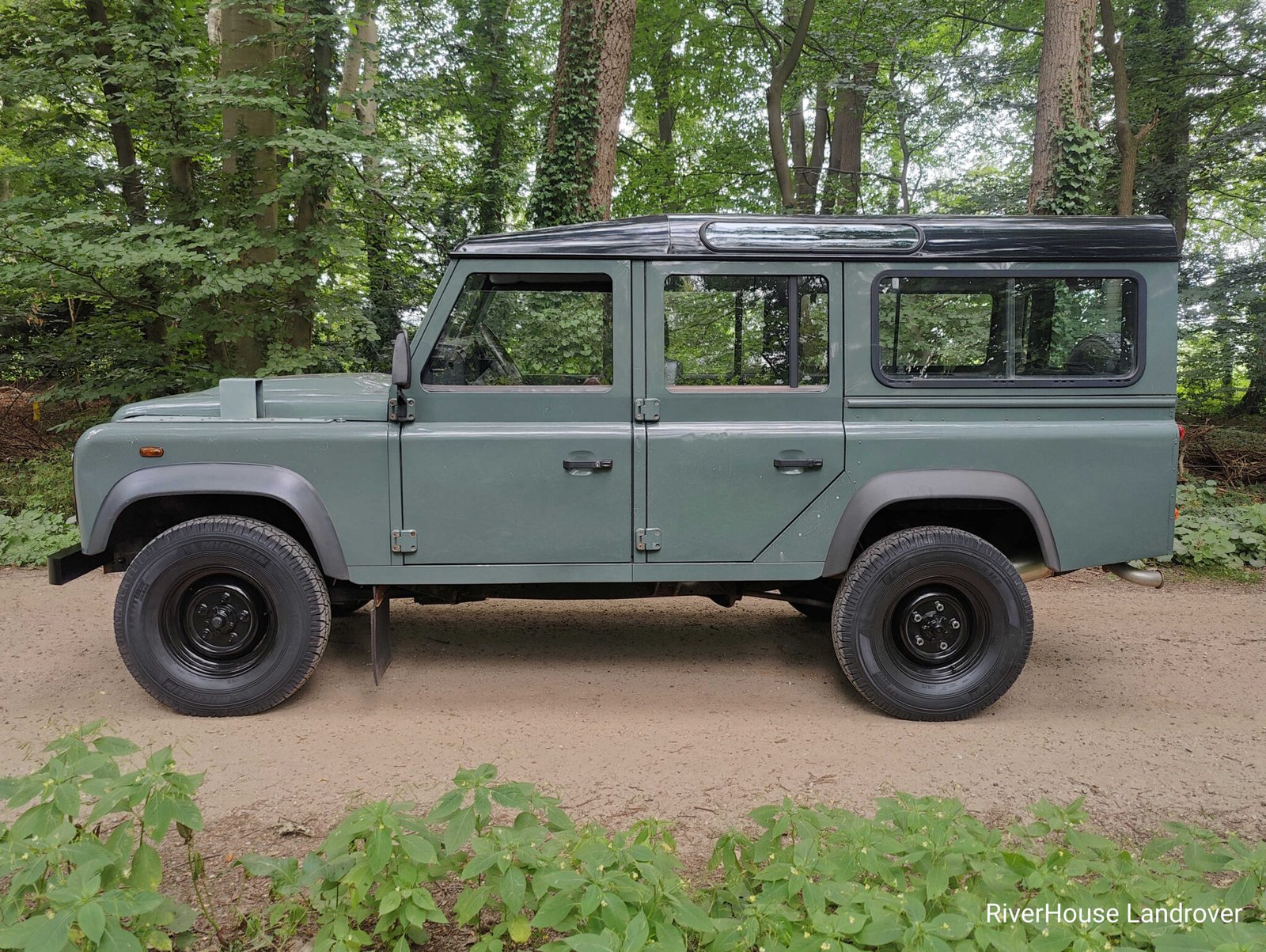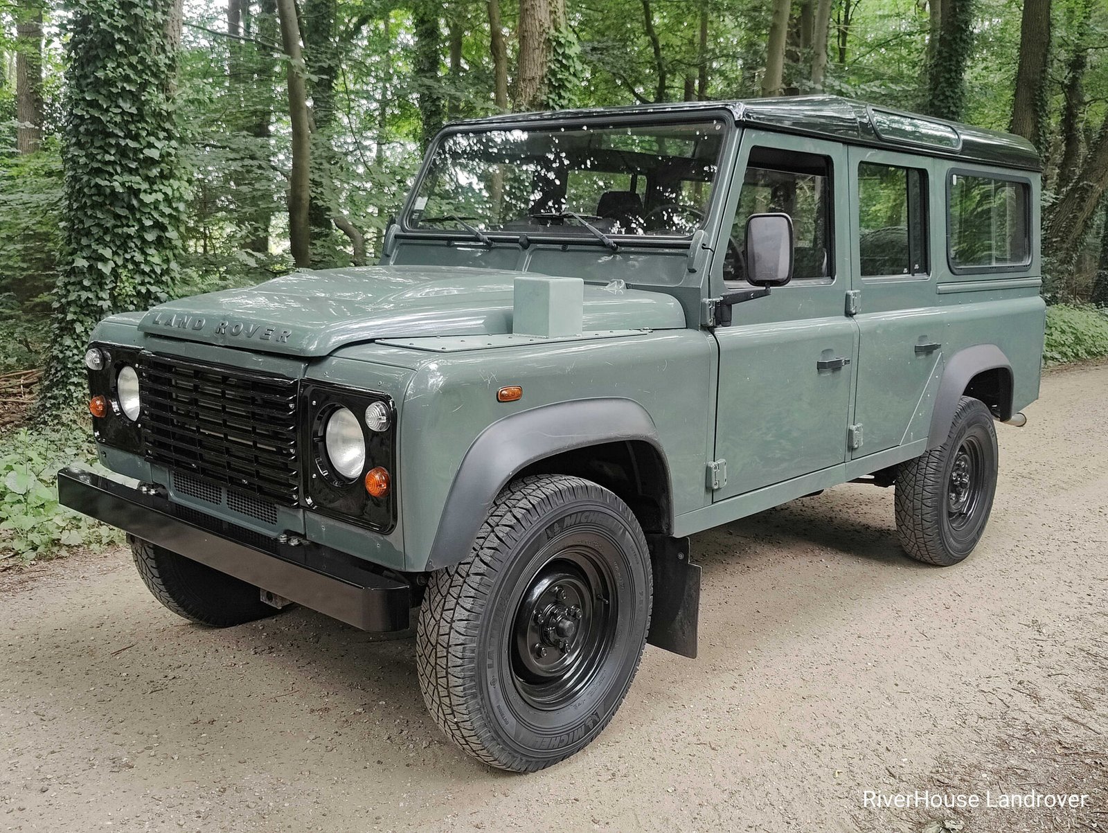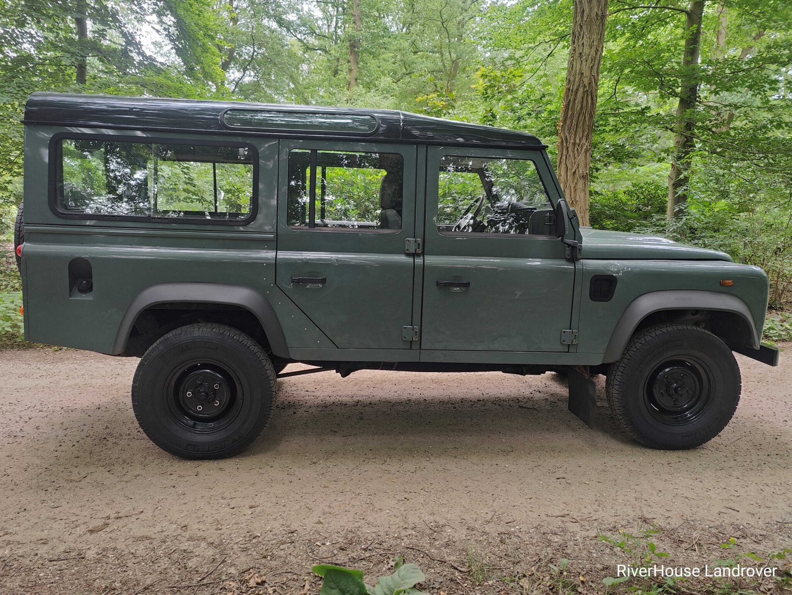 2009 LHD Defender 110 2.4 TDCI ex French Army with only 70.500 km in Keswick Green with Black roof